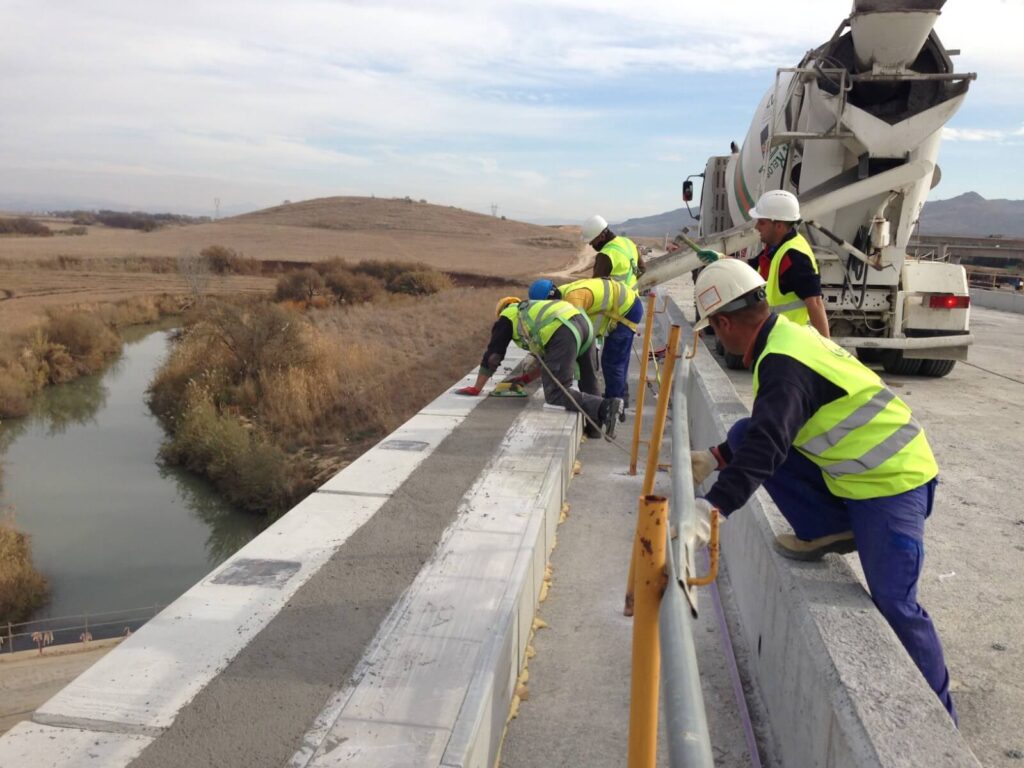 Trabajo de obra civil consistente en el hormigonado de muro guardabalastro para sujeción de firme realizado para proyecto de línea Tren de Alta Velocidad entre Bobadilla y Granada.