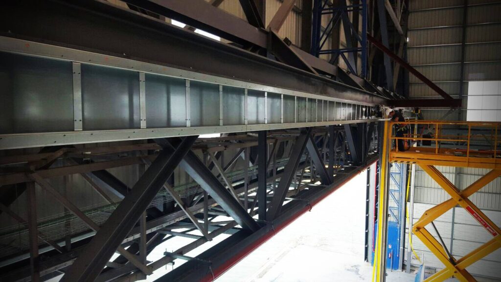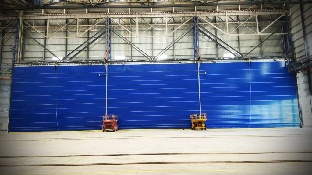 Montaje de puertas rápidas de gran envergadura fabricadas a medida por la empresa Varduva en Lituania. En total requirió de un trabajo dedicado de un equipo específico al contar con 60 metros de largo por 15 de alto.